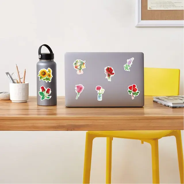 50 nalepk z veliko lepimi rožicami. Prilepi se na vse gladke, čiste površine in ga je enostavno odluščiti, ne da bi pustil ostanke. Te nalepke so vodoodporne in trajajo dolgo časa. Popoln za okrasitev različnih predmetov, za obrt, zavijanje daril in še veliko več.