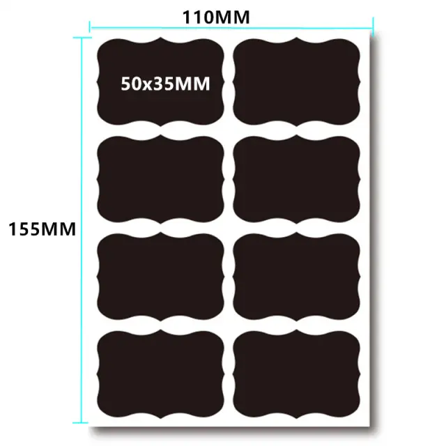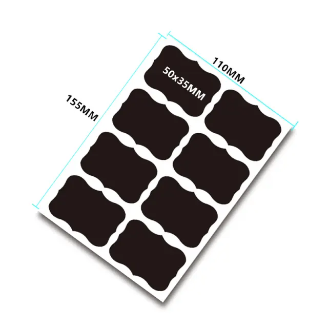 Vodoodporne in primerne za pisanje: Te nalepke so izdelane iz visokokakovostnega PVC materiala, so vodoodporne in odporne na razlitje in vlago. Gladka površina omogoča enostavno pisanje in brisanje s krednimi markerji.