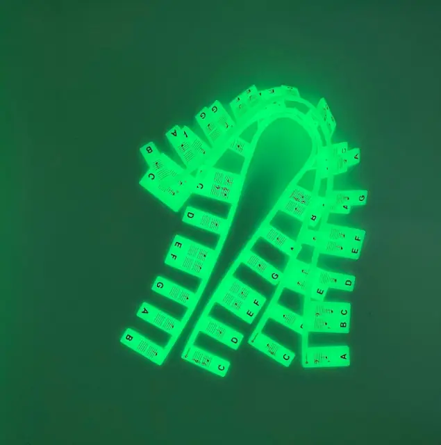 Univerzalna združljivost: Te nalepke so zasnovane tako, da ustrezajo vsem standardnim klavirjem s 61 tipkami, vključno s pokončnimi klavirji, velikimi klavirji in digitalnimi klavirji, zaradi česar so vsestranska izbira za vse ljubitelje klavirja.