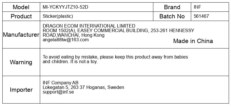 Da ne bi pomotoma zaužili tega izdelka, hranite izven dosega dojenčkov in otrok. To ni igrača.