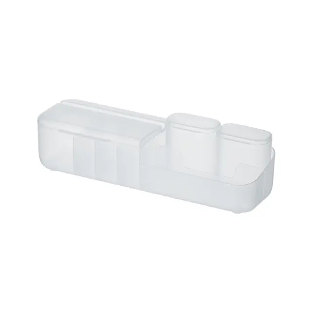 Značilnosti: 1. Robusten in vzdržljiv: izdelan iz visokokakovostne plastike ABS, prozoren, vzdržljiv, vodoodporen, odporen na prah in proti iztiskanju. 2. Transparentna zasnova: Škatla za shranjevanje podatkovnega kabla ima matirano prozorno zasnovo, tako da lahko jasno vidite predmete v notranjosti, tako da jih lahko hitro najdete, ko jih potrebujete. 3. Velika zmogljivost: škatla za shranjevanje podatkovnega kabla je zasnovana v različnih velikostih in je opremljena tudi z dvema prenosnima škatlama za shranjevanje, ki lahko lepo shranita različne drobnarije in prihranita prostor na namizju in predalu. 4. Organizirano shranjevanje: razvrstite in shranite vse, da se izognete neurejenemu nakitu kabelskih slušalk. Poskrbite, da bo vaš dom ves čas čist in urejen na zgornji mizi in predalu. 5. Večnamenska uporaba: našo zasnovo predelne stene v velikosti škatle za shranjevanje lahko postavite ločeno na namizje ali v predal. Dve majhni škatli za shranjevanje sta enostavni za prenašanje, ne zavzameta prostora, ko greste ven, vaša torba pa lahko ostane čista in urejena.