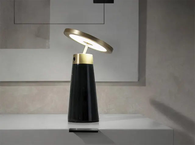 Namizna svetilka iz črnega marmorja in zlatega jekla