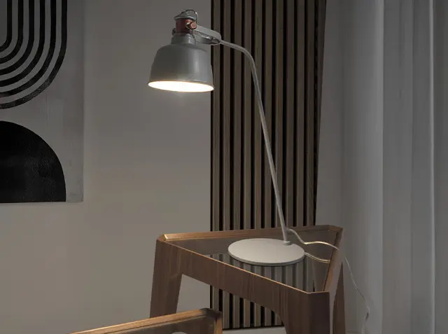 Namizna svetilka iz sivega jekla in bronastih detajlov