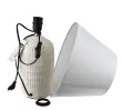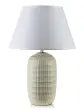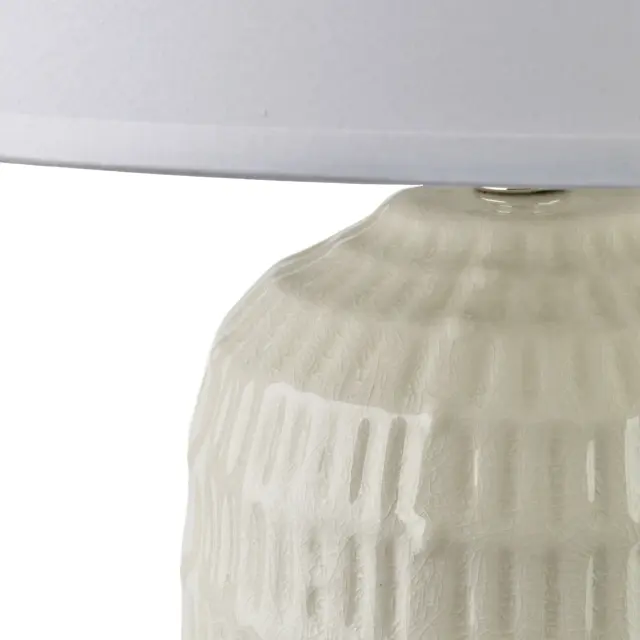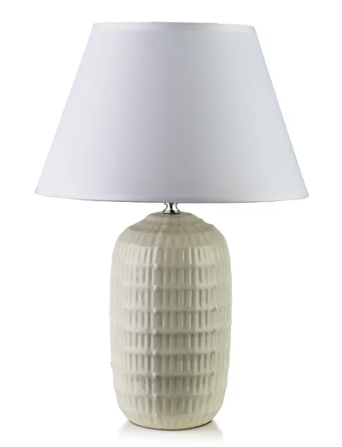 Namizna svetilka MONDEX iz kolekcije LETI združuje keramično osnovo in tekstilni senčnik v elegantno celoto, ki se lepo poda tako v sodobno kot klasično opremljene prostore. Gladko obdelana keramika deluje dekorativno tudi, ko svetilka ni prižgana, ob vklopu pa senčnik zagotovi mehko in prijetno razpršeno svetlobo. Primerna je za ustvarjanje umirjenega ambienta v dnevni sobi, kot nočna svetilka v spalnici ali kot dodatna osvetlitev na komodi, polici oziroma v delovnem kotičku.
