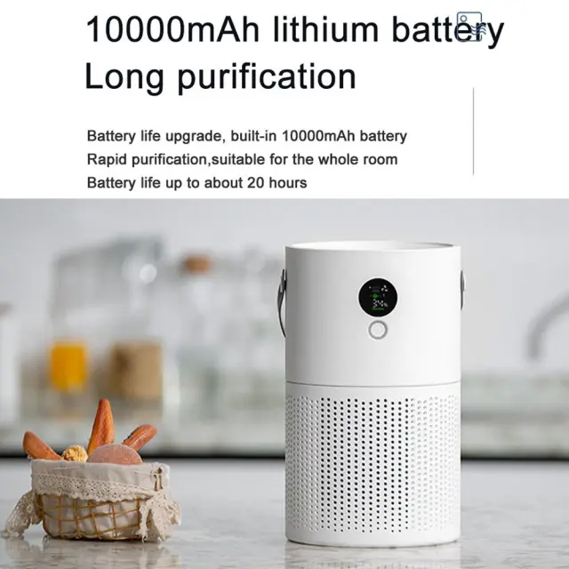 Portable and Convenient: Ta namizni čistilec zraka je zasnovan za vrhunsko prenosljivost in priročnost ter je kot nalašč za uporabo v različnih okoljih. Njegova kompaktna velikost vam omogoča, da ga enostavno premikate iz sobe v sobo, kar zagotavlja, da imate vedno dostop do čistega zraka. Ne glede na to, ali delate za mizo, se sproščate v dnevni sobi ali spite v spalnici, ta čistilec zraka zagotavlja dosledno in zanesljivo čiščenje zraka. Vgrajena baterija s kapaciteto 10000 mAh ponuja daljšo uporabo, zaradi česar je idealna za potovanja ali območja, kjer so električne vtičnice omejene. Uživajte v svobodi čistega zraka, kamor koli greste, z našo vsestransko in uporabniku prijazno rešitvijo za čiščenje zraka.