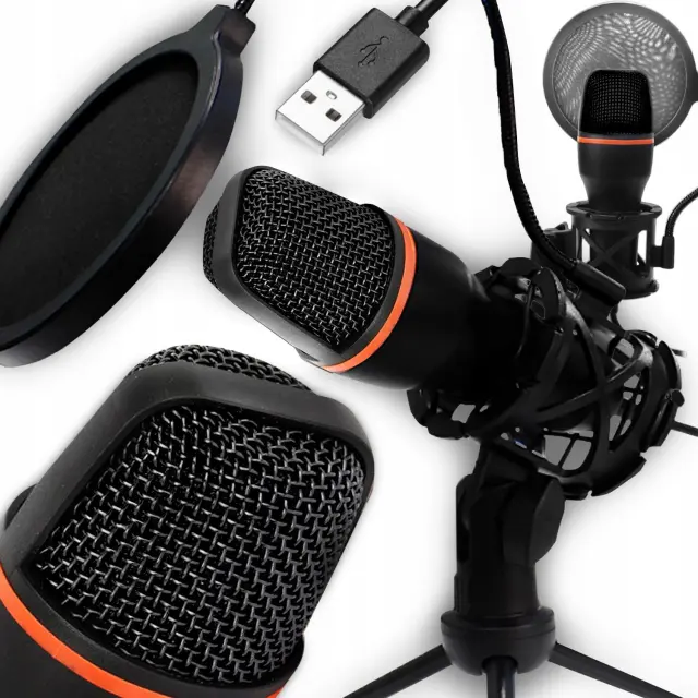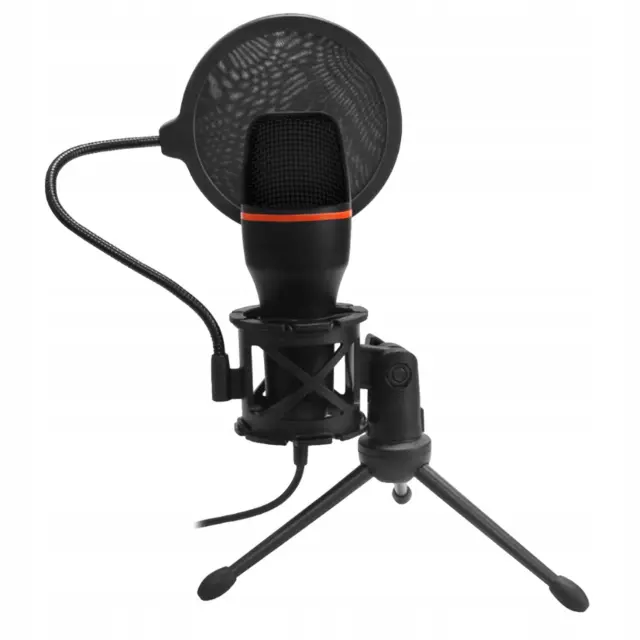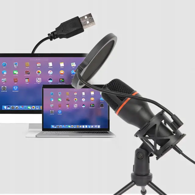 Kondenzatorski mikrofon USB s priloženim stojalom in pop filtrom (tj. zmanjšanje hrupa, ki ga povzroča izbruh zraka iz ust med govorjenjem) je uporabno orodje marsikje. To je idealna rešitev za ljudi, ki potrebujejo kakovosten mikrofon za izvajanje nalog snemanja zvoka, kot so videokonference, snemanje podcastov, ustvarjanje video vsebin na spletnih platformah, snemanje pesmi ali celo snemanje zvočnih knjig.