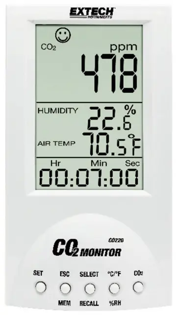 Namizni merilnik za nadzor nad ogljikovim dioksidom in kakovostjo zraka v zaprtih prostorih Extech CO220 merilnik ogljikovega dioksida 0 - 9999 ppm