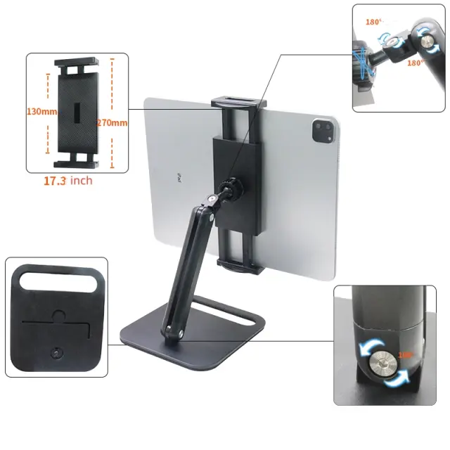 Prilagodljivi koti gledanja: ima prilagodljivo roko in vrtljivo podlago, ki vam omogoča enostavno prilagajanje višine in kota vaše naprave. Poiščite popoln ergonomski položaj za delo, gledanje ali branje, zmanjšajte obremenitev vratu in hrbta.