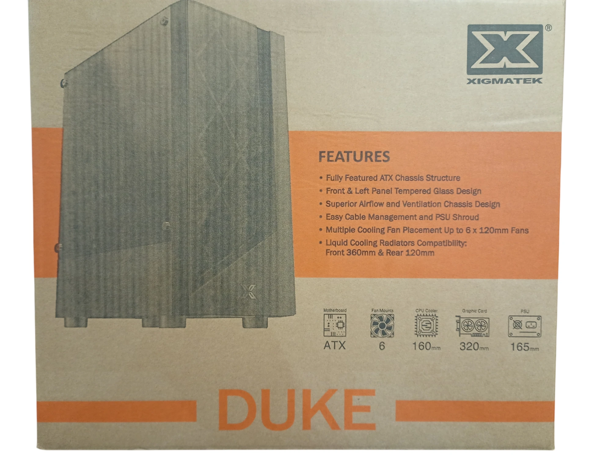 • Ohišje: Duke (ATX, USB 3.0, mrežasta prednja stran, kaljeno steklo, 4x X24F ventilatorji)