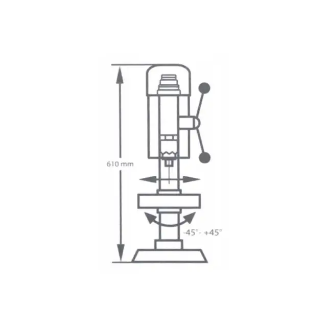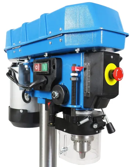 Stebrični namizni sveder z gladko nastavitvijo globine vrtanja.