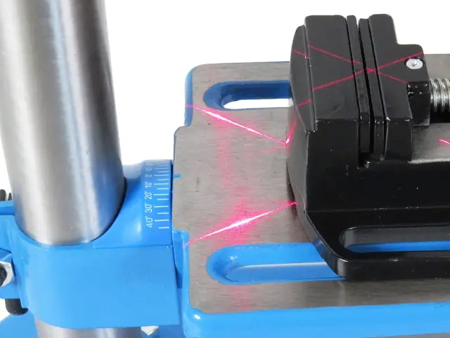 Opremljen je z laserskim kazalcem z dvema črtama. To omogoča natančno pozicioniranje obdelanega materiala in vrtanje na pravo mesto.