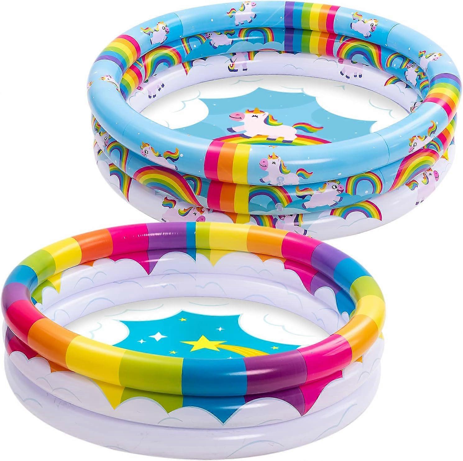 Napihljiv otroški bazen, 2 paketa 47'' Rainbow Unicorn otroški bazen s tremi obroči za otroke, vodni bazen za poletno zabavo za starost 3+