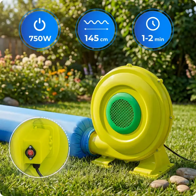 Stalen pretok zraka ohranja stabilen tlak. Postavitev in napihovanje trajata le 1–2 minuti.