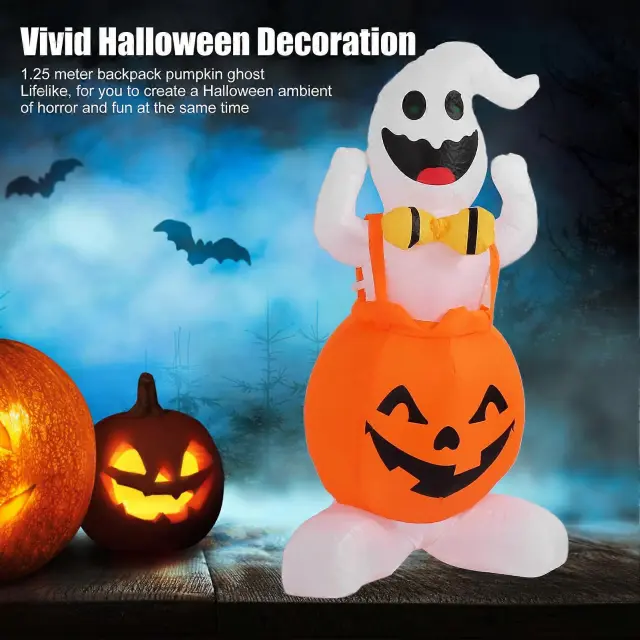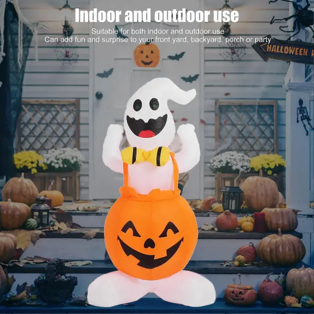 Napihljiva dekoracija Halloween Pumpkin Ghost Zabavna simulacija Inovativna dekoracija za zabavo za noč čarovnic z LED lučko 100240 V 4,1 ft Uk vti