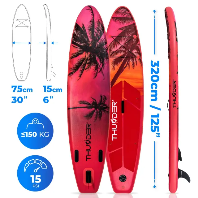 Napihljiva SUP deska 320 × 75 × 15 cm – set z veslom, sedežem, torbo in pumpko THUNDER® ISLE