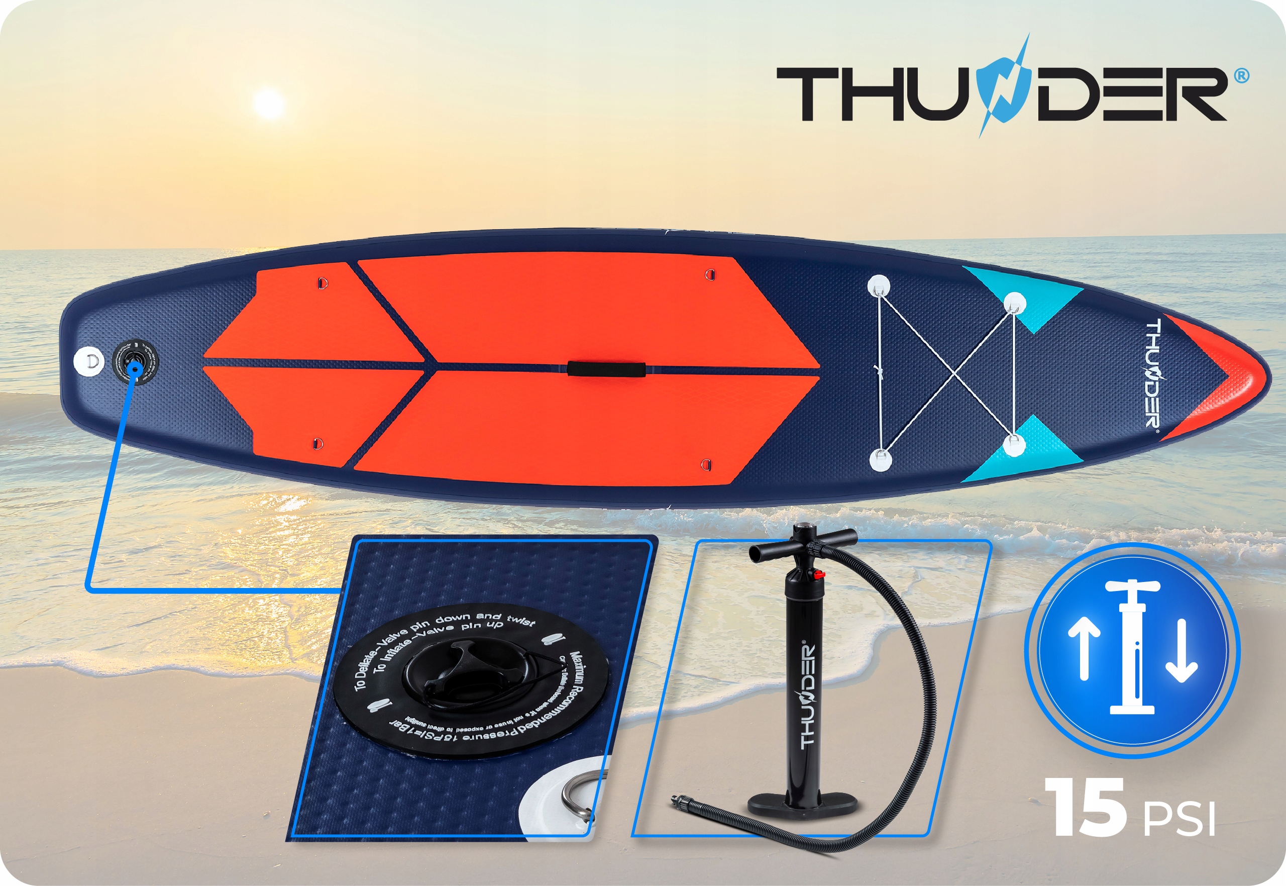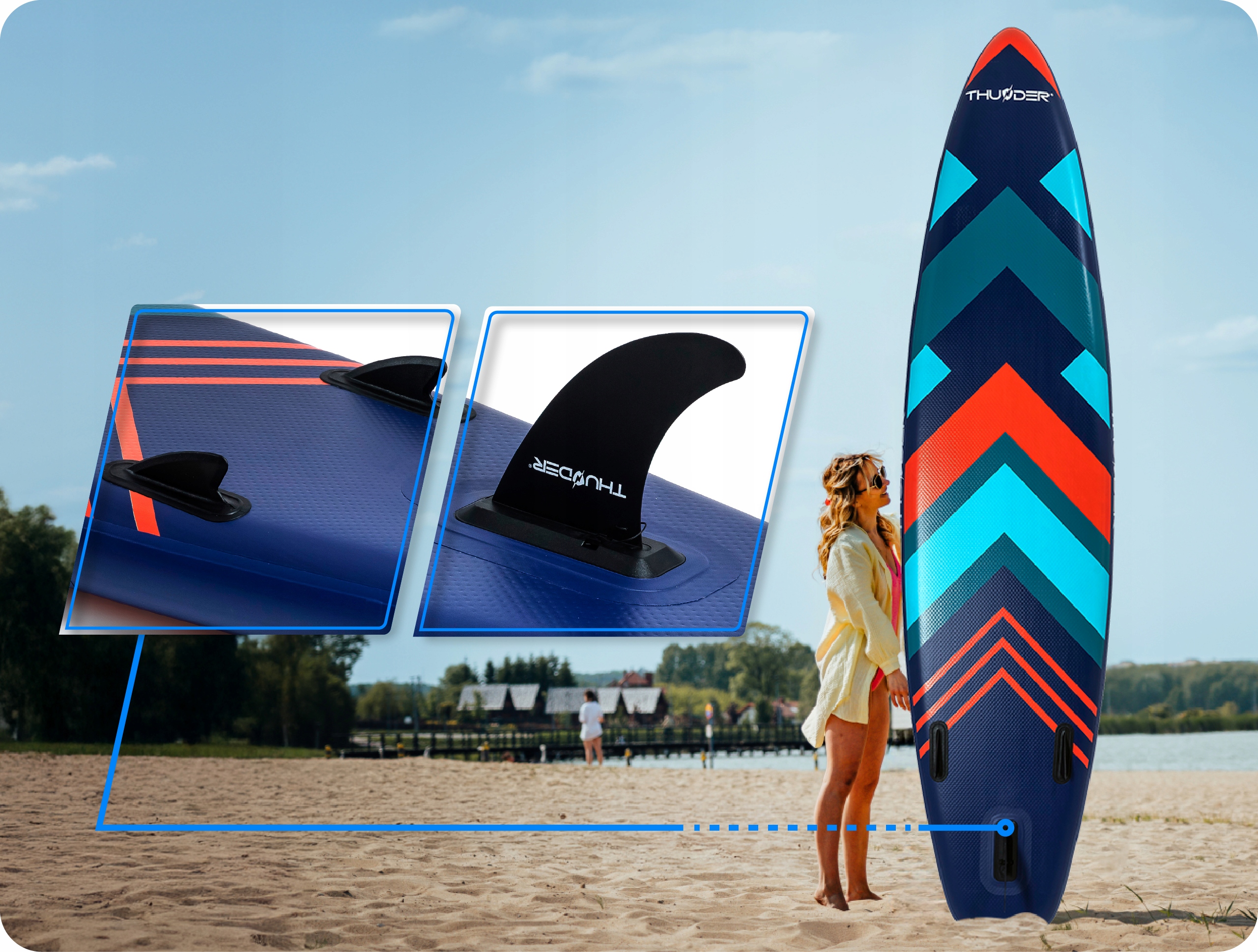 Napihljiva SUP deska 320 × 75 × 15 cm – set z veslom, sedežem, torbo in pumpko THUNDER® STRIPES