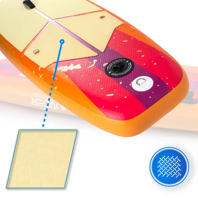 Napihljiva SUP deska – 320 cm stabilnosti, udobja in popolne vsestranskosti Napihljiva SUP deska dolžine 320 cm je odlična izbira za rekreativno veslanje, družinske izlete in daljše ture. Zahvaljujoč 15-centimetrski debelini, široki zasnovi ter napredni konstrukciji drop-stitch nudi izjemno stabilnost, togost in zanesljivo uporabo za začetnike in izkušene veslače. ⭐ Ključne lastnosti ✔ Stabilna in vzdržljiva konstrukcija – Tehnologija I-Drop Stitch (IDC) za maksimalno togost – Kompozitna površina z 5 mm EVA proti zdrsu – Izjemna trpežnost in odpornost na obrabo ✔ Dimenzije in nosilnost – 320 × 75 × 15 cm – Nosilnost: do 150 kg – Kompletna teža: ok. 13 kg ✔ 2v1: SUP + kajak – Možnost montaže sedeža (če je v kompletu) – D-ringi za enostavno pritrditev opreme ✔ Hitro in preprosto napihovanje – Dvosmerna pumpa za hitro pripravo – Priporočljiv tlak: 15 PSI – Visokotlačni ventil za popolno tesnjenje ✔ Komplet dodatkov (odvisno od modela) – Nastavljivo veslo (pribl. 162–215 cm) – Sedež (če je priložen) – Torba/rucksack za prenašanje – Smernik – Varnostna vrvica (leash) – Komplet za popravilo ⭐ Udobje in varnost – Nedrseča EVA površina za popoln oprijem – Elastični sprednji prtljažnik za osebne predmete – 3 plavuti za stabilizacijo in boljšo vodljivost – Varnostna vrvica prepreči odmik deske ob padcu ⭐ Za koga je primerna? Sup 320 cm priporočamo za: – začetnike, rekreativce in družine – uporabnike do 150 kg – mirne vode, jezera, reke in morje – daljše ture in vsakodnevno rekreacijo – SUP + kajak kombinacijo ⭐ Zakaj izbrati SUP dolžine 320 cm? – optimalno razmerje med stabilnostjo in hitrostjo – primeren za vse starosti in stopnje znanja – vsestranska uporaba: sprostitev, trening, izleti – enostavno shranjevanje in prenašanje.
