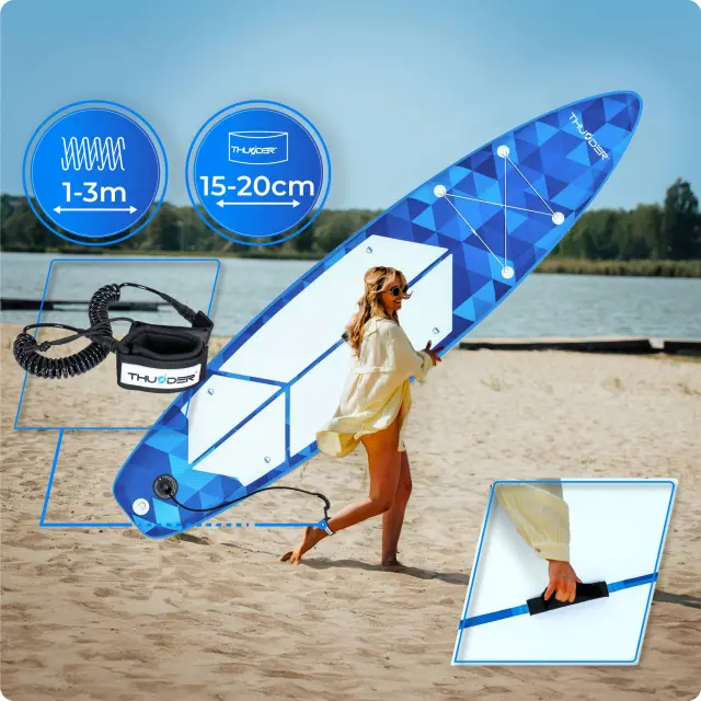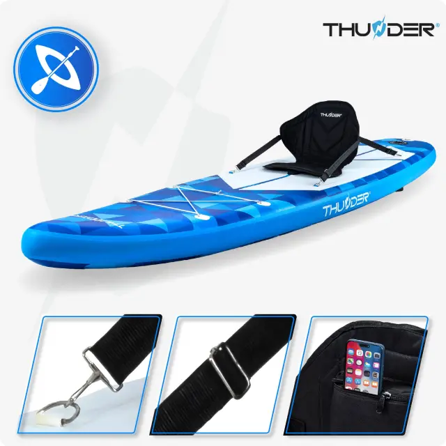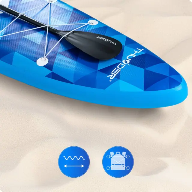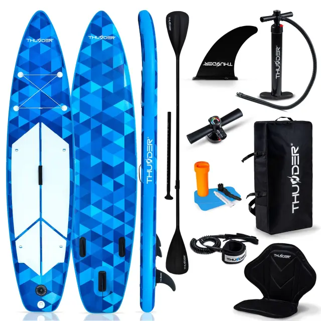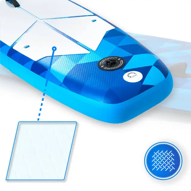 Napihljiva SUP deska – 320 cm stabilnosti, udobja in popolne vsestranskosti Napihljiva SUP deska dolžine 320 cm je odlična izbira za rekreativno veslanje, družinske izlete in daljše ture. Zahvaljujoč 15-centimetrski debelini, široki zasnovi ter napredni konstrukciji drop-stitch nudi izjemno stabilnost, togost in zanesljivo uporabo za začetnike in izkušene veslače. ⭐ Ključne lastnosti ✔ Stabilna in vzdržljiva konstrukcija – Tehnologija I-Drop Stitch (IDC) za maksimalno togost – Kompozitna površina z 5 mm EVA proti zdrsu – Izjemna trpežnost in odpornost na obrabo ✔ Dimenzije in nosilnost – 320 × 75 × 15 cm – Nosilnost: do 150 kg – Kompletna teža: ok. 13 kg ✔ 2v1: SUP + kajak – Možnost montaže sedeža (če je v kompletu) – D-ringi za enostavno pritrditev opreme ✔ Hitro in preprosto napihovanje – Dvosmerna pumpa za hitro pripravo – Priporočljiv tlak: 15 PSI – Visokotlačni ventil za popolno tesnjenje ✔ Komplet dodatkov (odvisno od modela) – Nastavljivo veslo (pribl. 162–215 cm) – Sedež (če je priložen) – Torba/rucksack za prenašanje – Smernik – Varnostna vrvica (leash) – Komplet za popravilo ⭐ Udobje in varnost – Nedrseča EVA površina za popoln oprijem – Elastični sprednji prtljažnik za osebne predmete – 3 plavuti za stabilizacijo in boljšo vodljivost – Varnostna vrvica prepreči odmik deske ob padcu ⭐ Za koga je primerna? Sup 320 cm priporočamo za: – začetnike, rekreativce in družine – uporabnike do 150 kg – mirne vode, jezera, reke in morje – daljše ture in vsakodnevno rekreacijo – SUP + kajak kombinacijo ⭐ Zakaj izbrati SUP dolžine 320 cm? – optimalno razmerje med stabilnostjo in hitrostjo – primeren za vse starosti in stopnje znanja – vsestranska uporaba: sprostitev, trening, izleti – enostavno shranjevanje in prenašanje.