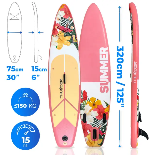 Napihljiva SUP deska 320 × 75 × 15 cm – set z veslom, sedežem, torbo in pumpko THUNDER® VIOSA