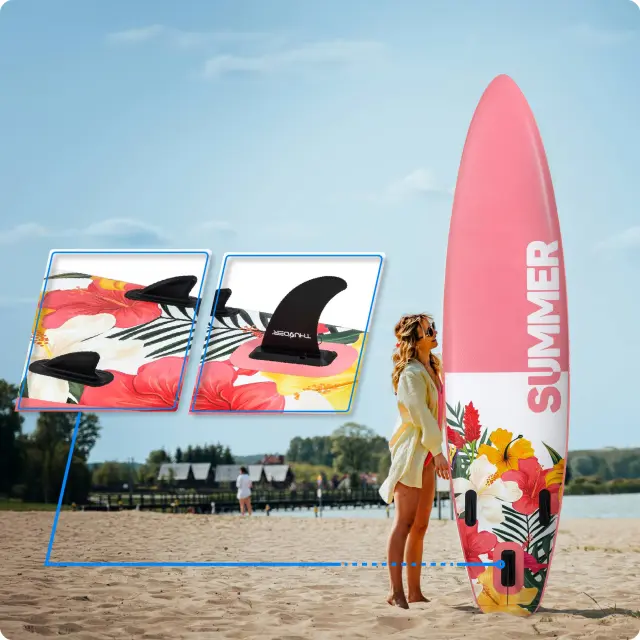 Napihljiva SUP deska – 320 cm stabilnosti, udobja in popolne vsestranskosti Napihljiva SUP deska dolžine 320 cm je odlična izbira za rekreativno veslanje, družinske izlete in daljše ture. Zahvaljujoč 15-centimetrski debelini, široki zasnovi ter napredni konstrukciji drop-stitch nudi izjemno stabilnost, togost in zanesljivo uporabo za začetnike in izkušene veslače. ⭐ Ključne lastnosti ✔ Stabilna in vzdržljiva konstrukcija – Tehnologija I-Drop Stitch (IDC) za maksimalno togost – Kompozitna površina z 5 mm EVA proti zdrsu – Izjemna trpežnost in odpornost na obrabo ✔ Dimenzije in nosilnost – 320 × 75 × 15 cm – Nosilnost: do 150 kg – Kompletna teža: ok. 13 kg ✔ 2v1: SUP + kajak – Možnost montaže sedeža (če je v kompletu) – D-ringi za enostavno pritrditev opreme ✔ Hitro in preprosto napihovanje – Dvosmerna pumpa za hitro pripravo – Priporočljiv tlak: 15 PSI – Visokotlačni ventil za popolno tesnjenje ✔ Komplet dodatkov (odvisno od modela) – Nastavljivo veslo (pribl. 162–215 cm) – Sedež (če je priložen) – Torba/rucksack za prenašanje – Smernik – Varnostna vrvica (leash) – Komplet za popravilo ⭐ Udobje in varnost – Nedrseča EVA površina za popoln oprijem – Elastični sprednji prtljažnik za osebne predmete – 3 plavuti za stabilizacijo in boljšo vodljivost – Varnostna vrvica prepreči odmik deske ob padcu ⭐ Za koga je primerna? Sup 320 cm priporočamo za: – začetnike, rekreativce in družine – uporabnike do 150 kg – mirne vode, jezera, reke in morje – daljše ture in vsakodnevno rekreacijo – SUP + kajak kombinacijo ⭐ Zakaj izbrati SUP dolžine 320 cm? – optimalno razmerje med stabilnostjo in hitrostjo – primeren za vse starosti in stopnje znanja – vsestranska uporaba: sprostitev, trening, izleti – enostavno shranjevanje in prenašanje.