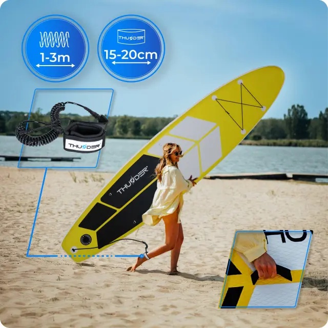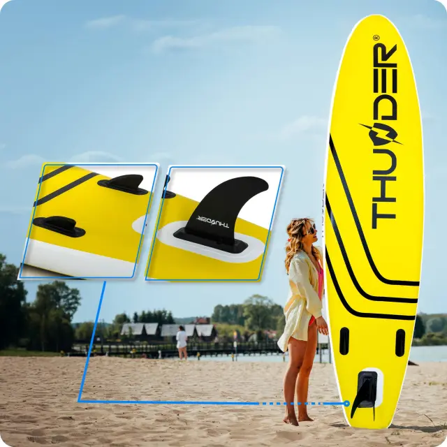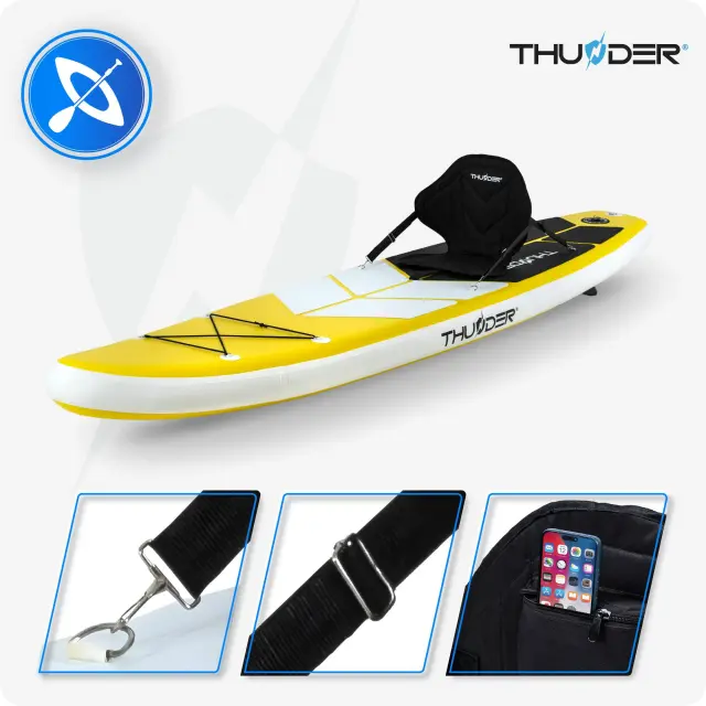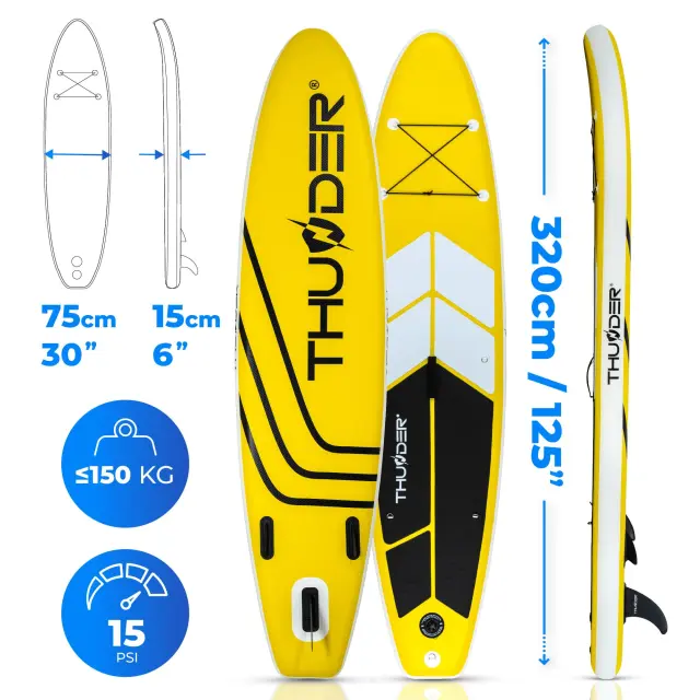 Napihljiva SUP deska 320 × 75 × 15 cm – set z veslom, sedežem, torbo in pumpko THUNDER® COAST-YELLOW
