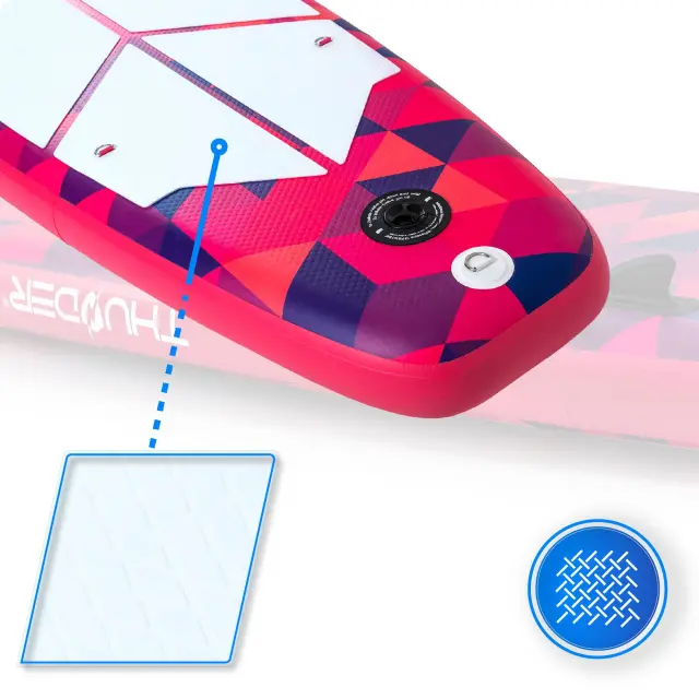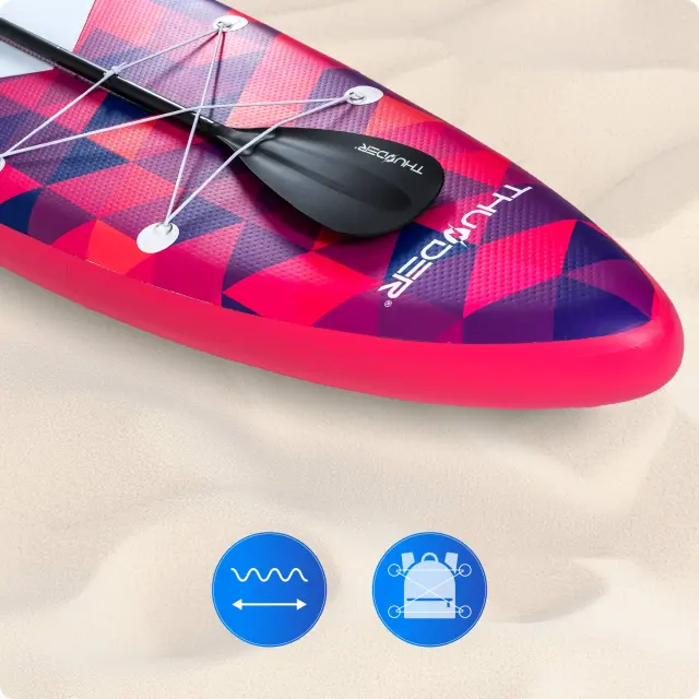 Napihljiva SUP deska – 320 cm stabilnosti, udobja in popolne vsestranskosti Napihljiva SUP deska dolžine 320 cm je odlična izbira za rekreativno veslanje, družinske izlete in daljše ture. Zahvaljujoč 15-centimetrski debelini, široki zasnovi ter napredni konstrukciji drop-stitch nudi izjemno stabilnost, togost in zanesljivo uporabo za začetnike in izkušene veslače. ⭐ Ključne lastnosti ✔ Stabilna in vzdržljiva konstrukcija – Tehnologija I-Drop Stitch (IDC) za maksimalno togost – Kompozitna površina z 5 mm EVA proti zdrsu – Izjemna trpežnost in odpornost na obrabo ✔ Dimenzije in nosilnost – 320 × 75 × 15 cm – Nosilnost: do 150 kg – Kompletna teža: ok. 13 kg ✔ 2v1: SUP + kajak – Možnost montaže sedeža (če je v kompletu) – D-ringi za enostavno pritrditev opreme ✔ Hitro in preprosto napihovanje – Dvosmerna pumpa za hitro pripravo – Priporočljiv tlak: 15 PSI – Visokotlačni ventil za popolno tesnjenje ✔ Komplet dodatkov (odvisno od modela) – Nastavljivo veslo (pribl. 162–215 cm) – Sedež (če je priložen) – Torba/rucksack za prenašanje – Smernik – Varnostna vrvica (leash) – Komplet za popravilo ⭐ Udobje in varnost – Nedrseča EVA površina za popoln oprijem – Elastični sprednji prtljažnik za osebne predmete – 3 plavuti za stabilizacijo in boljšo vodljivost – Varnostna vrvica prepreči odmik deske ob padcu ⭐ Za koga je primerna? Sup 320 cm priporočamo za: – začetnike, rekreativce in družine – uporabnike do 150 kg – mirne vode, jezera, reke in morje – daljše ture in vsakodnevno rekreacijo – SUP + kajak kombinacijo ⭐ Zakaj izbrati SUP dolžine 320 cm? – optimalno razmerje med stabilnostjo in hitrostjo – primeren za vse starosti in stopnje znanja – vsestranska uporaba: sprostitev, trening, izleti – enostavno shranjevanje in prenašanje.
