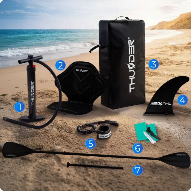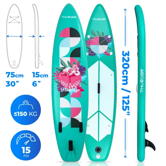 Napihljiva SUP deska 320 × 75 × 15 cm – set z veslom, sedežem, torbo in pumpko THUNDER® FLAMI