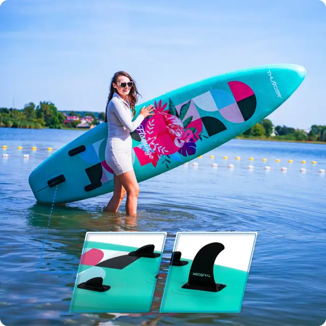 • Tri plavuti na spodnji strani zagotavljajo boljšo stabilnost, hitrost in vodljivost. Široka zasnova omogoča lažje ohranjanje ravnotežja in je idealna za daljše vožnje.