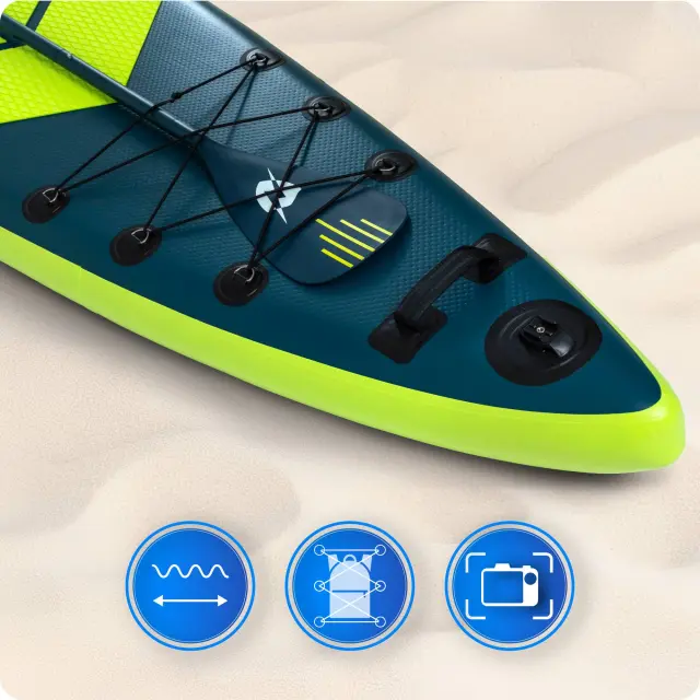 Model VISO je 365-centimetrska, profesionalna napihljiva SUP deska, zasnovana za dologradne ture, rekreativno veslanje, SUP + kajak ter snemanje športnih aktivnosti zahvaljujoč vgrajenemu nastavku za GoPro.