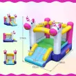 Praznujmo skupaj! Kombinacija gladkega tobogana in prostornega prostora za skakanje zagotavlja neskončno zabavo. Ta napihljiv grad je izdelan iz visokokakovostne tkanine Oxford, ki je odporna na trganje, z dvojnimi šivi za dolgotrajno zabavo. Za večjo varnost poskrbijo tudi mrežaste varnostne stene. Napihljivega balona preprosto razgrnite, ga priključite na puhalo in ga pritrdite s talnimi sidri. S prijatelji si delite odlično zabavo - kadarkoli in kjerkoli! Idealno za notranje in zunanje prostore