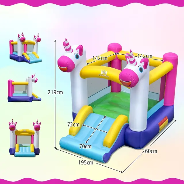Neskončne ure igranja: Ta napihljiv grad združuje veliko območje za skakanje z nežnim toboganom in ponuja dvojno zabavo v kompaktni zasnovi. Odličen za družinska srečanja, rojstnodnevne zabave ali počitnice - otroke zaposli na zabaven način.