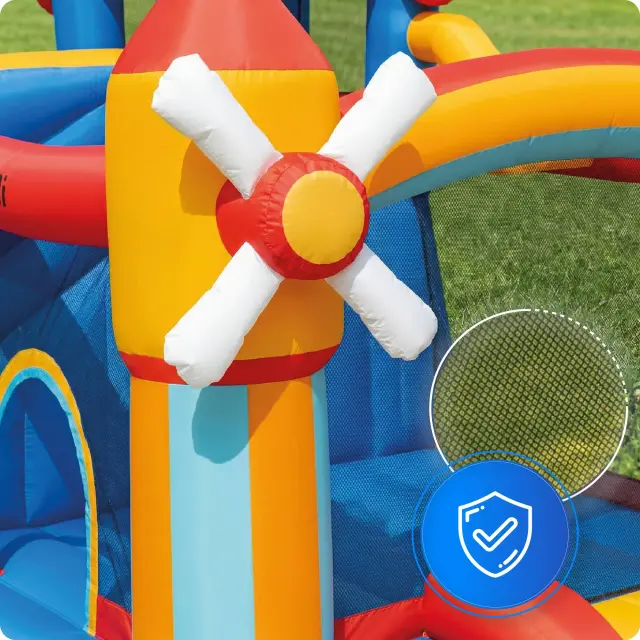 Izdelano iz trpežnega materiala PVC 420D + 840D, odpornega na obrabo in raztezanje. Večkomorna konstrukcija zagotavlja dobro amortizacijo in varno skakanje.