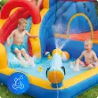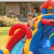 Velik tobogan s široko drsno površino in bazenom omogoča priklop vrtne cevi, zato ga lahko uporabljate kot vodni tobogan v toplih dneh.