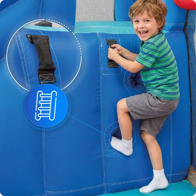Posebne odprtine za stopala delujejo kot lestev, omogočajo varen vzpon ter razvoj ravnotežja in koordinacije.