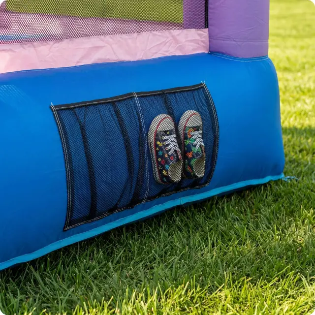 Mrežasti žep omogoča shranjevanje čevljev, igrač ali dodatkov ter pomaga ohranjati red.