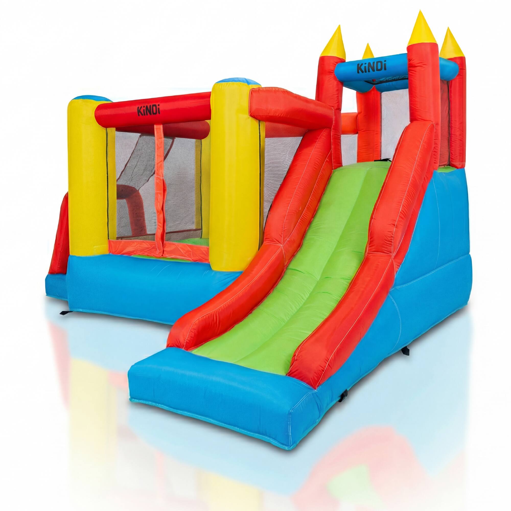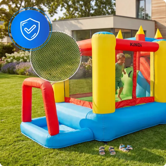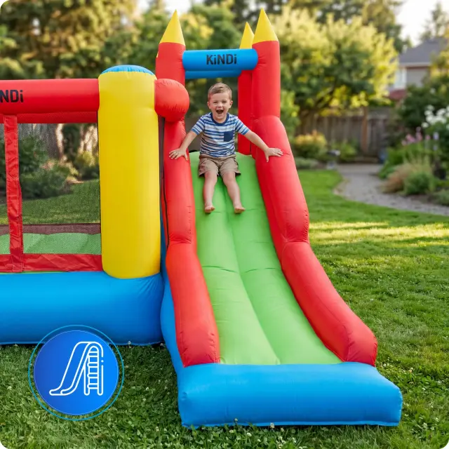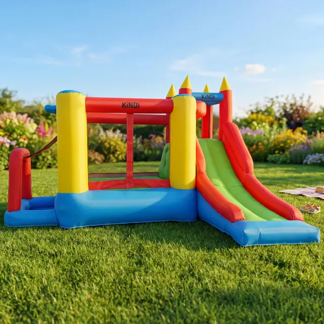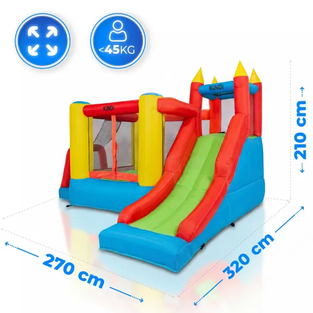 KiNDi DPZ009 je klasičen vrtni rekreacijski set, ki združuje prostorno skakalno površino z velikim in širokim toboganom. Dinamična zasnova v živih barvah omogoča uporabo na vrtu, dvorišču ali družinskih srečanjih.
