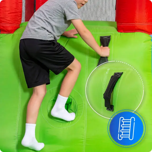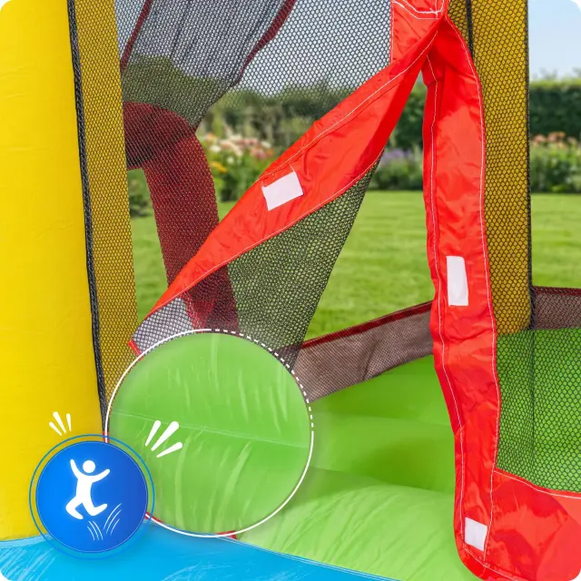 Skakalna površina je obdana z visokimi mrežastimi stenami, ki preprečujejo padce in omogočajo stalni nadzor staršev.