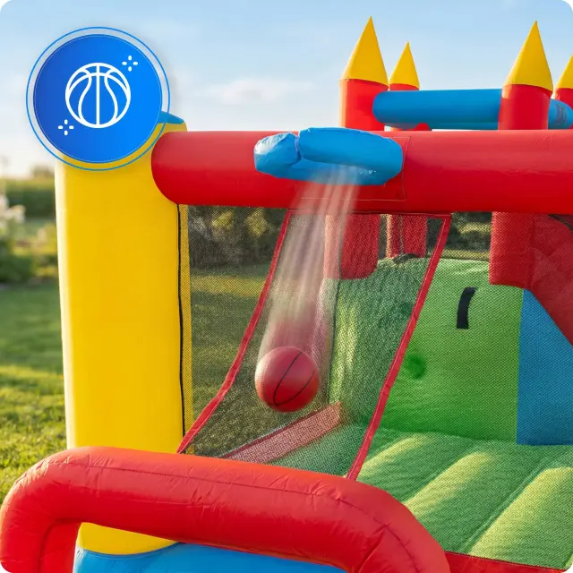 Vgrajen koš za košarko in elementi za ciljanje spodbujajo gibanje in razvoj koordinacije.