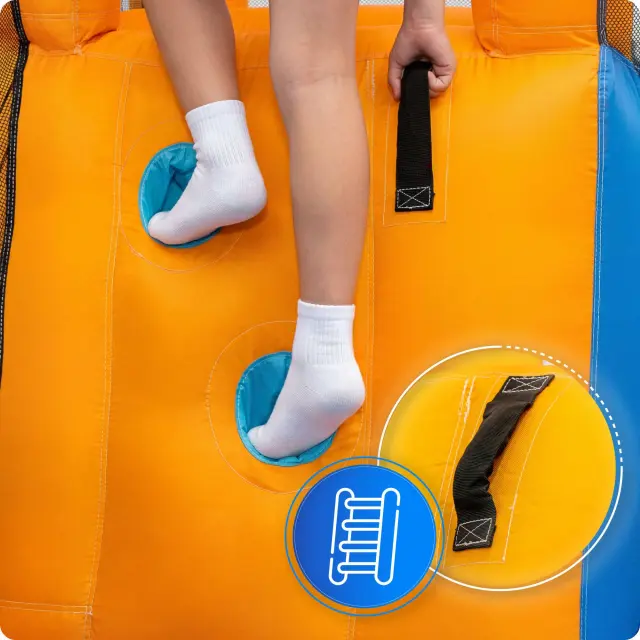 Ročaji in stopničke omogočajo stabilen vzpon in varen začetek spuščanja ter pomagajo pri razvoju ravnotežja in koordinacije.