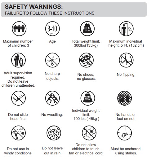 Izdelek zahteva neprekinjeno dovajanje zraka iz puhalnika (ta povzroča nekaj hrupa). Normalno je, da zračni mehurčki uhajajo skozi tkanino in šive.