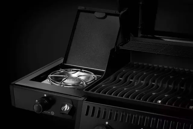 Za enakomerno temperaturo poskrbijo štirje visokokvalitetni glavni gorilniki iz nerjavečega jekla. Na levi polici pa najdemo plinski gorilnik ki je primeren za kuhanje kave, zelenjave in ostalih dobrot.