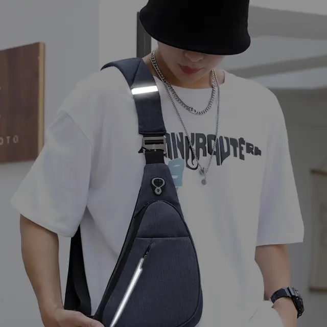 Vodoodporna in odporna na obrabo: Ta prsna torba je izdelana iz visokokakovostnega najlonskega blaga, zaradi česar je odporna na brizganje vode in vsakodnevno obrabo. Je popoln spremljevalec za potovanja, v službo ali pustolovščine na prostem, saj ohranja vaše stvari na varnem in suhem.