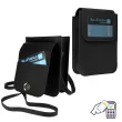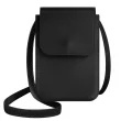 Naramna torba iz crnega umetnega usnja z zapiranjem z držalom za kartico na gumb
