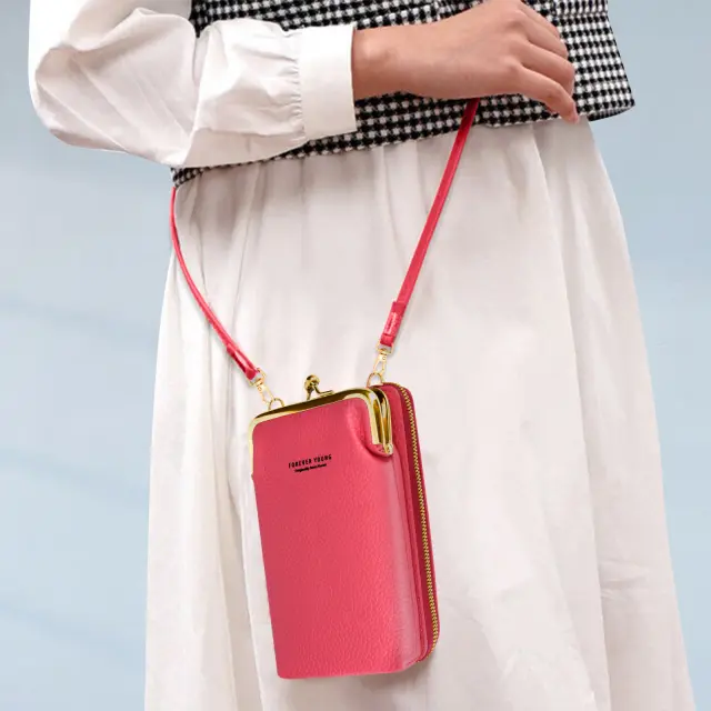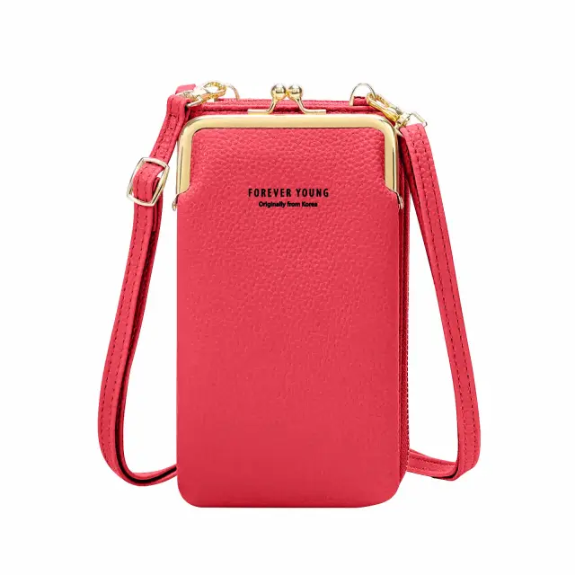 Praktična torba za shranjevanje vašega pametnega telefona in osebnih stvari. Dvojni predal, popoln za shranjevanje vseh vaših osnovnih stvari. Priložen naramni pas za lažji transport. Izdelan iz umetnega usnja, ki daje eleganten videz.