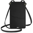 Naramna torba z zapiranjem na ježka z držalom za kartice, iz crnega umetnega usnja