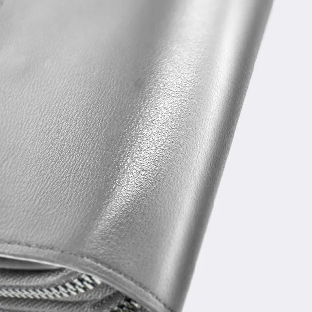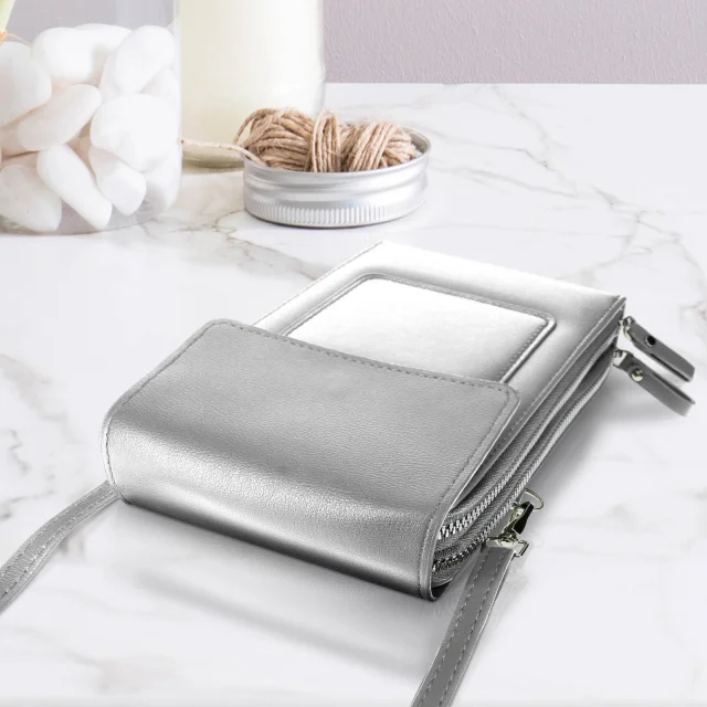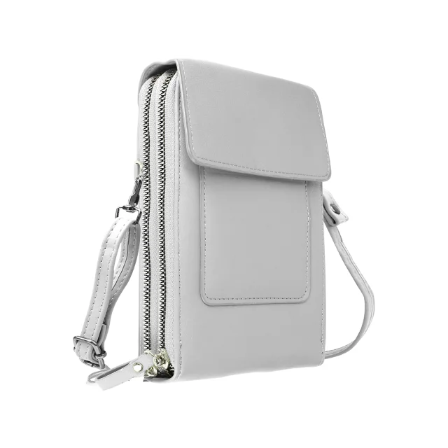 Naramna torba z zapiranjem na zadrgo in gumbom, iz sivega umetnega usnja