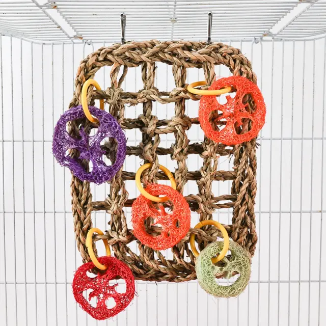 Varen naravni material: Izdelana iz popolnoma naravne trave, ta plezalna mreža za ptice zagotavlja varno in spodbudno okolje za vaše pernate prijatelje. Naravna trava je popolna za žvečenje in urejanje, spodbuja zdravo vzdrževanje kljuna in zmanjšuje dolgčas. Ne vsebuje škodljivih kemikalij ali umetnih dodatkov, kar zagotavlja dobro počutje vaše ptice med igro in raziskovanjem. Ta pravokotna plezalna mreža je odličen dodatek k vsaki kletki za ptice, saj ponuja naravno in privlačno središče dejavnosti.