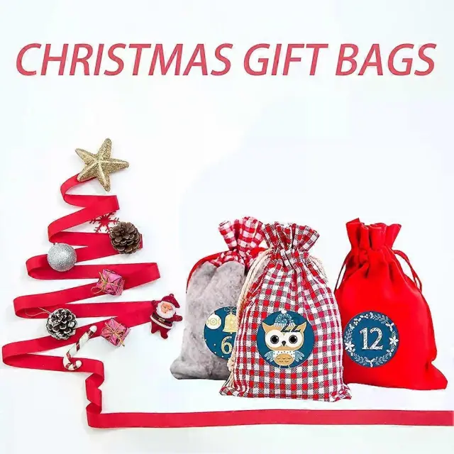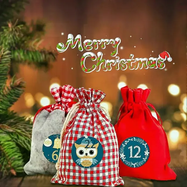 Naredi sam božične adventne koledarske vrečke 24-dnevne odštevalne vrečke papirnate nalepke z visečimi žepi letni okraski