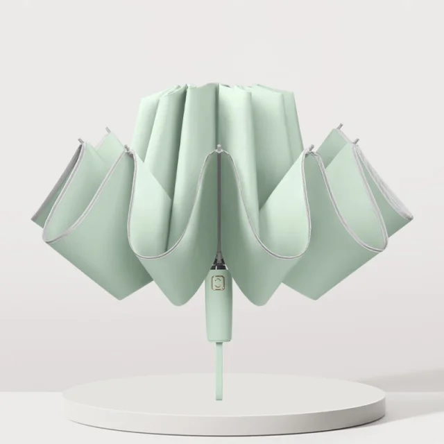 Narobe obrnjen dežnik z odsevnim trakom, zelen