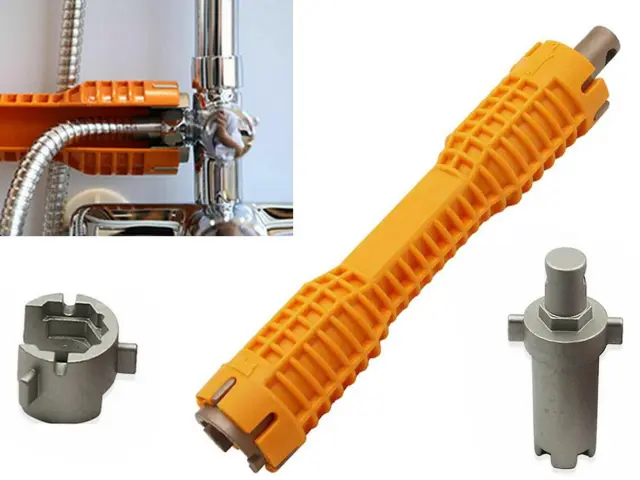 Univerzalni ključ za vodovodne inštalacije, omogoča enostavno montažo in demontažo umivalnikov, umivalnikov, pip, grelnikov vode itd.